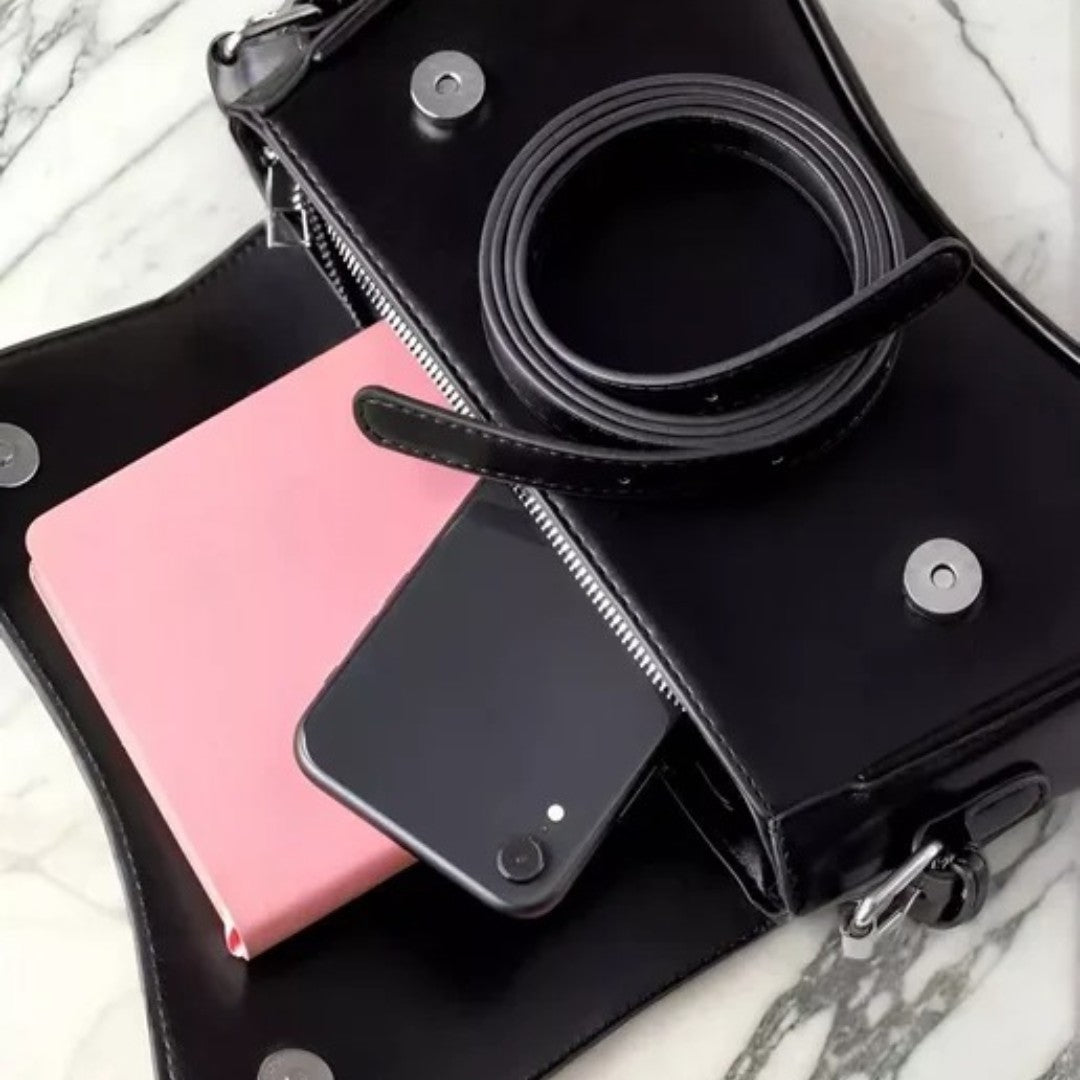 Magnificent bag, lined inside and with a zip pocket, comes with two straps, one for a baguette style and the other for a shoulder strap, and it has three slots to adjust the straps, zero flaws!