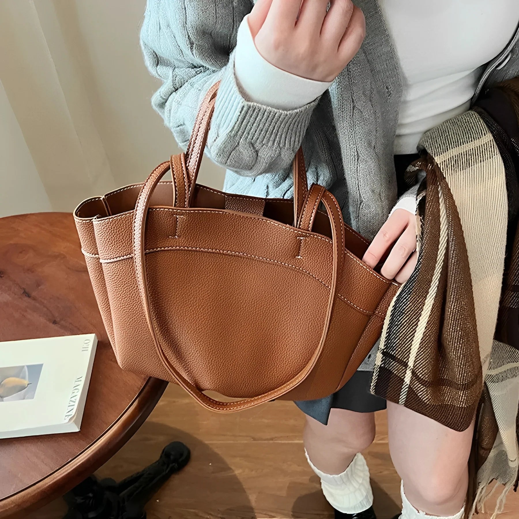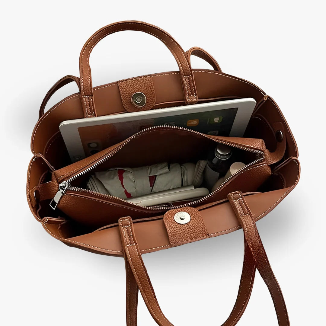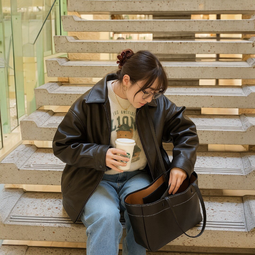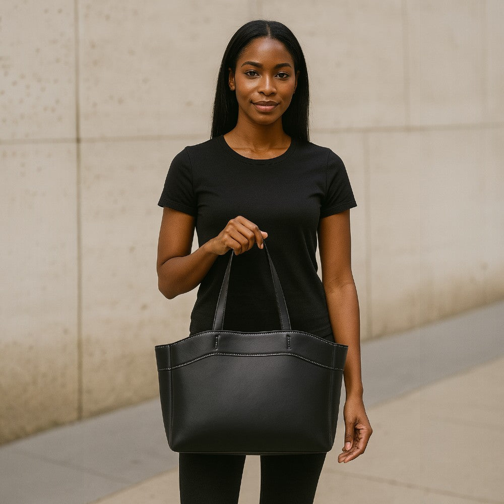 A nossa mala Emma é feita de couro vegetal de alta qualidade, combinando estilo casual com durabilidade. Projetada para ser suficientemente espaçosa, acomoda facilmente os seus essenciais: portátil, maquilhagem e acessórios do dia a dia.